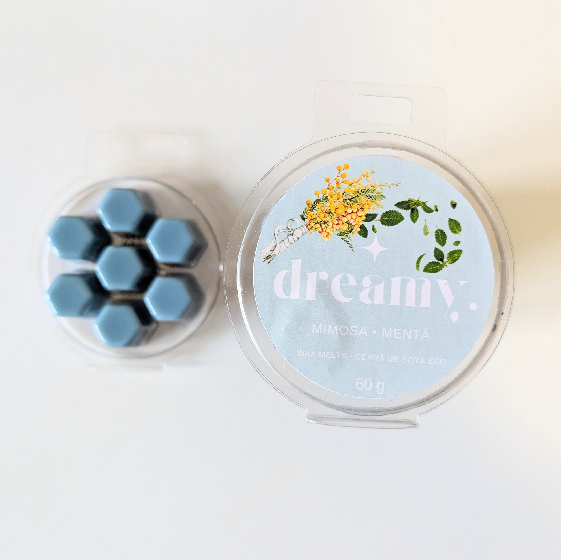 O călătorie spre lumea viselor începe cu Wax Melts Dreamy! Cu aroma sa îmbietoare de mentă proaspătă și mimoza delicată.